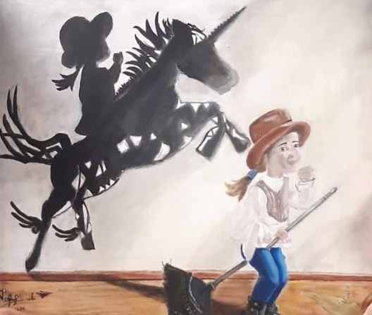 Mag mijn dochtertje Leany deelnemen aan de tentoonstelling?, vroeg Margarita ons. Waw, een dubbeltentoonstelling van moeder en dochter! Natuurlijk. We zijn erg benieuwd naar de dromen van Leany. Ik ook, zei Margarita. En zo staan we nu te kijken naar het werk, niet van één, maar van twee Chileense dames.