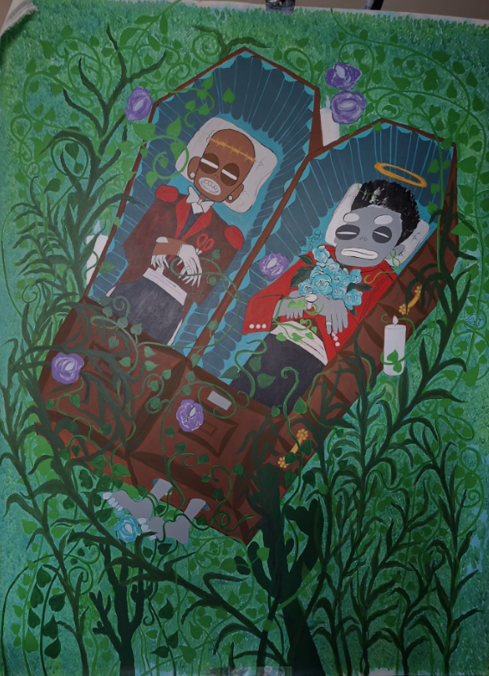 Maar nooit bitter, altijd met een glimlach op de mond. Arsène maakt tegenwoordig deel uit van een kleine krakersgroep die een leegstaand hotel bewoont in Brussel. Geen luxe, maar okay. Bouwen aan een nieuwe toekomst. Met kunst centraal, want Arsène wil van schilderen graag zijn beroep maken. Zijn werk draait vaak om dat ene typetje met grote holle ogen die de wereld aanstaren, zonder kritiek te geven, maar ook zonder begrip en met veel tristesse.